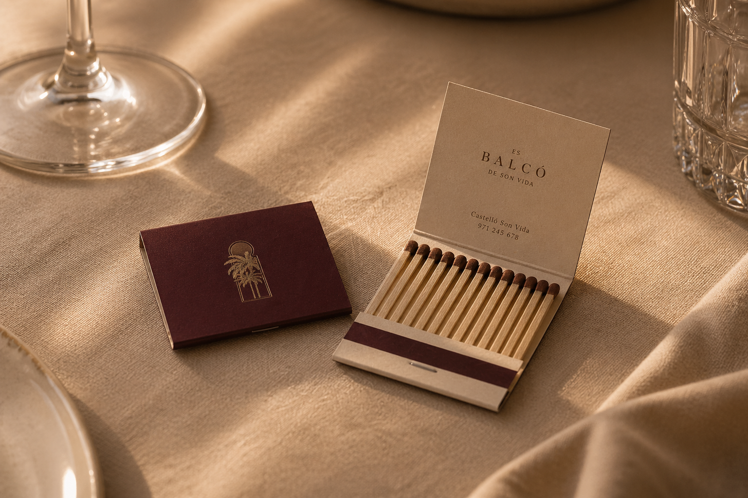 The brand is designed to be discovered gradually, revealing itself through proximity and interaction rather than immediate recognition. The iconography of ES Balcó de Son Vida draws inspiration from Mediterranean nature, heritage objects, and the timeless elegance of Son Vida. Each illustration is framed within a distinctive key-hole silhouette, creating a recognizable visual device that becomes part of the brand’s language.